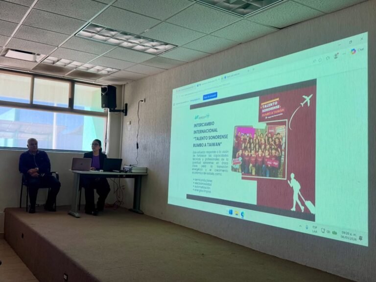 Guaymas, Sonora.— Estudiantes de la Universidad Tecnológica de Guaymas que realizan una estancia académica en Taiwán compartieron con sus compañeros su experiencia de aprendizaje en tecnologías de semiconductores y electromovilidad, áreas consideradas estratégicas para el desarrollo industrial de Sonora.